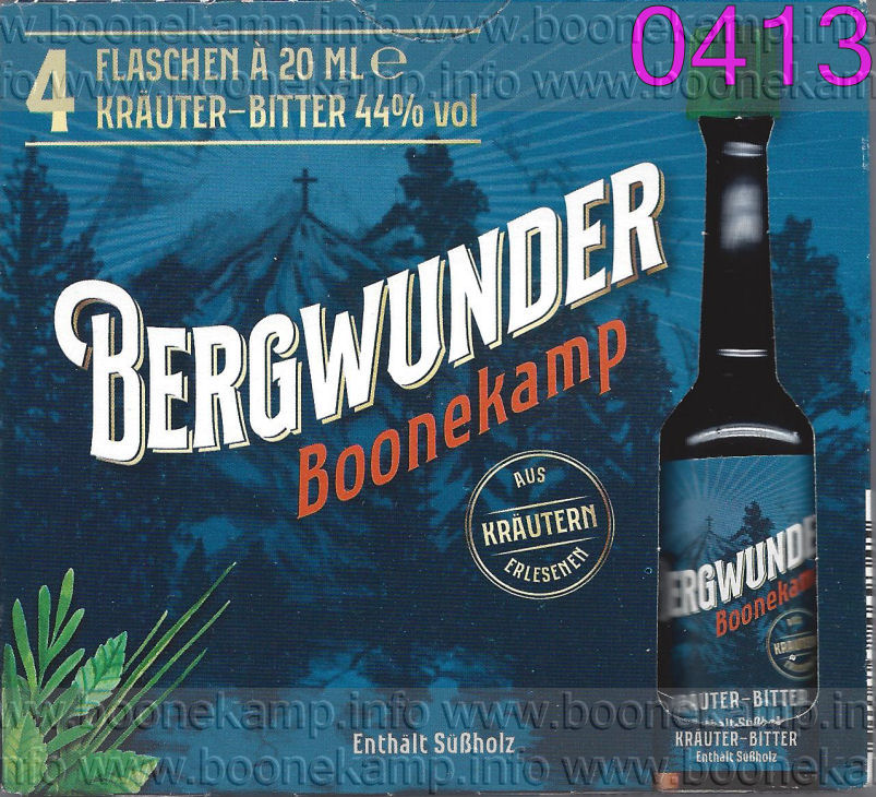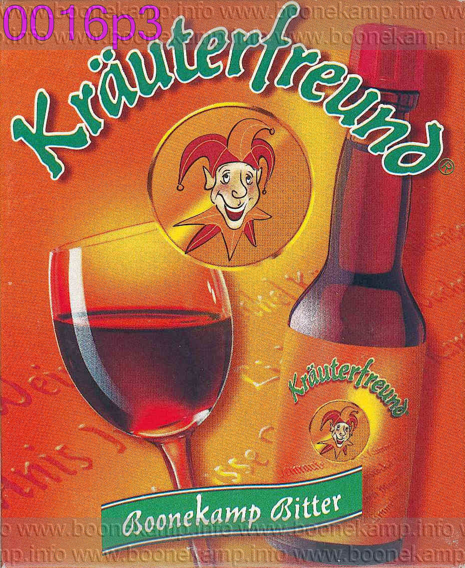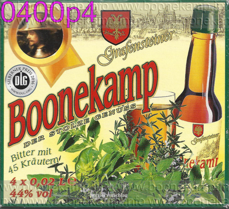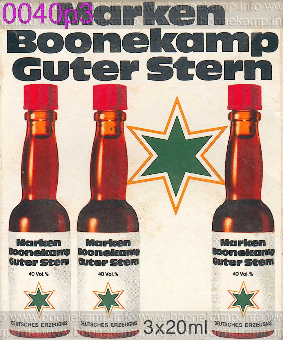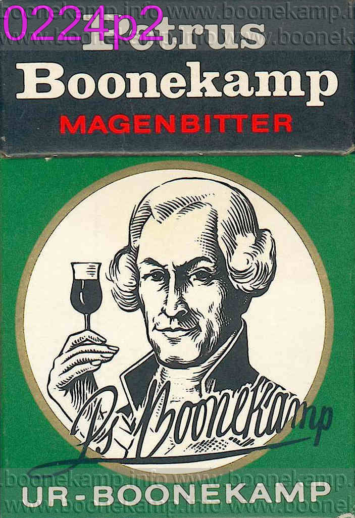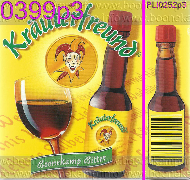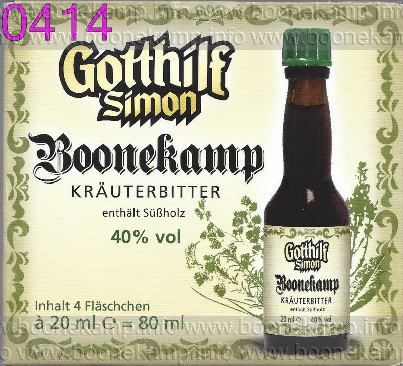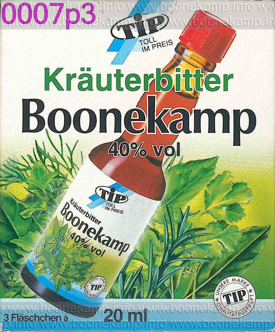 Erläuterung: Jede Boonekamp-Flasche bzw. Packung hat zur Identifikation eine fortlaufende Nummer erhalten (ID). In einigen Fällen sind die Unterschiede nur geringfügig (z.B. abweichende Werbetexte, Herstellerangaben, usw). Nähere Informationen dazu in der Datenbankliste.
