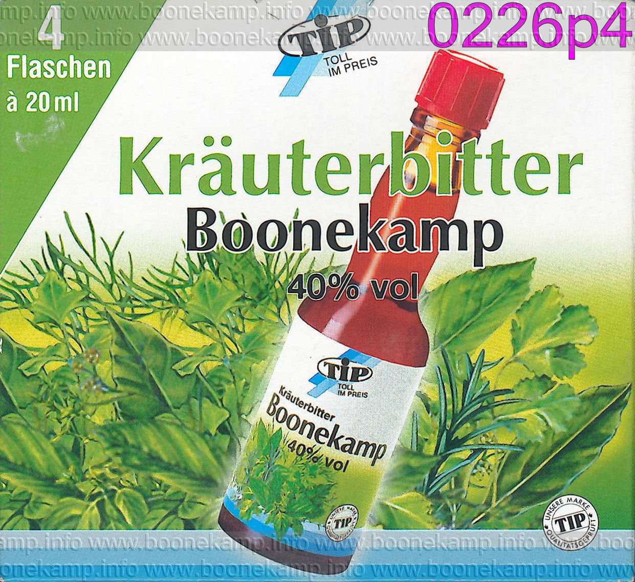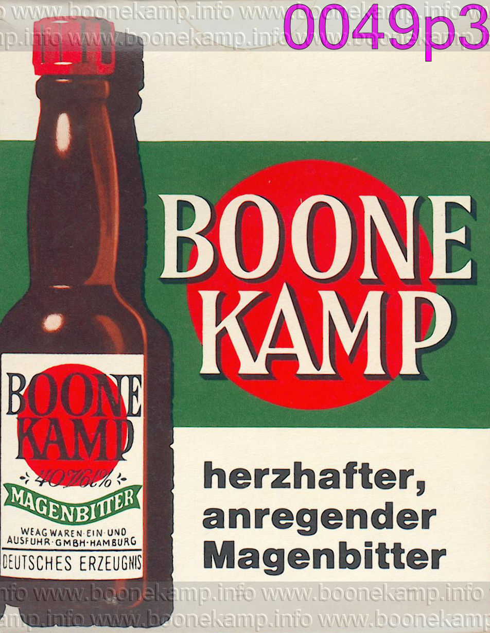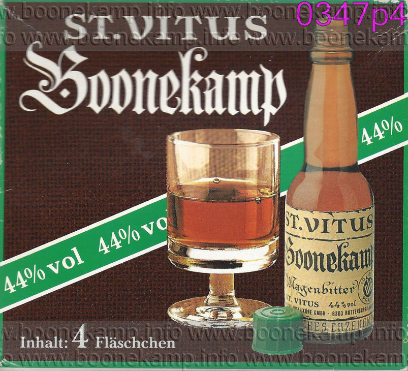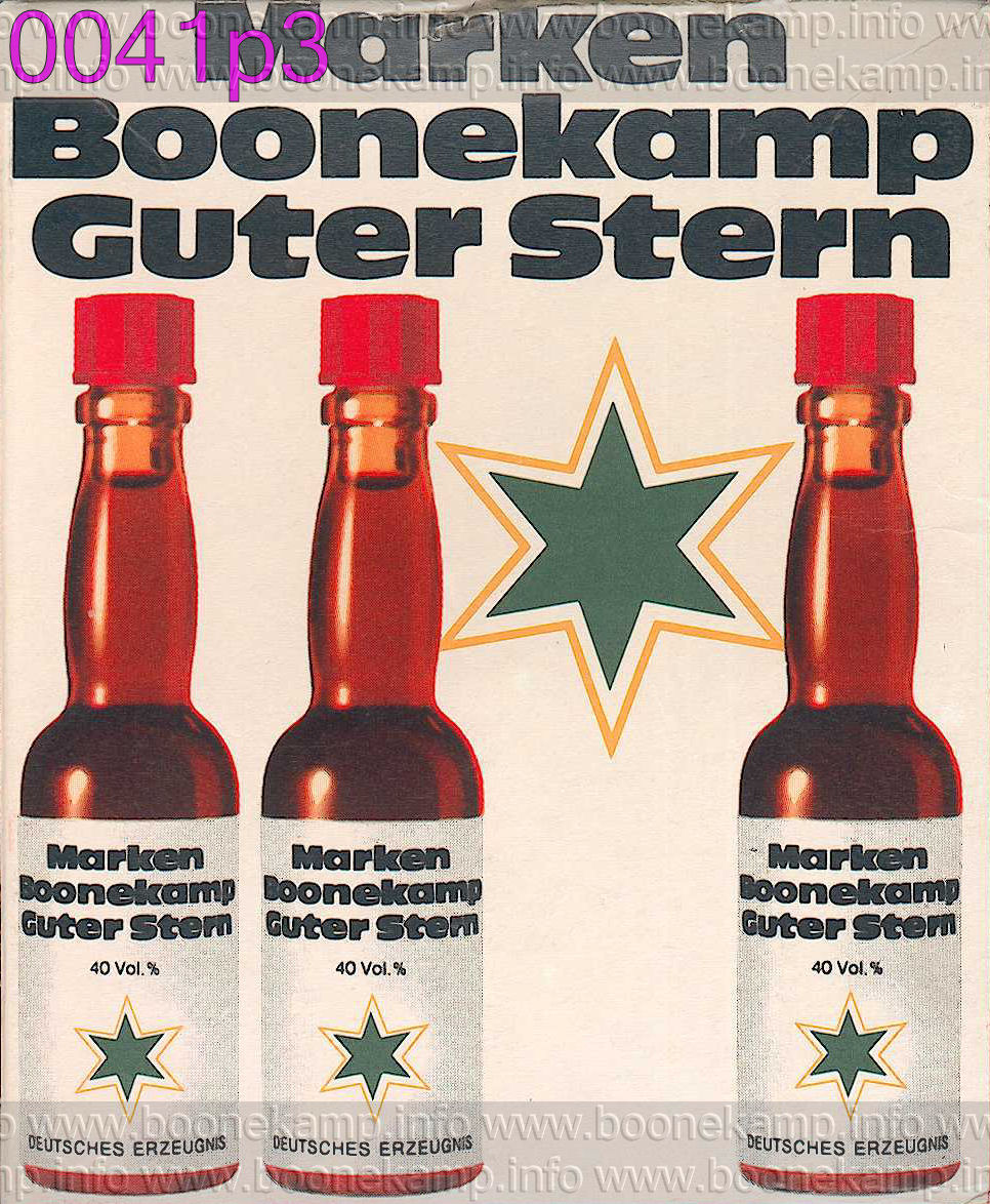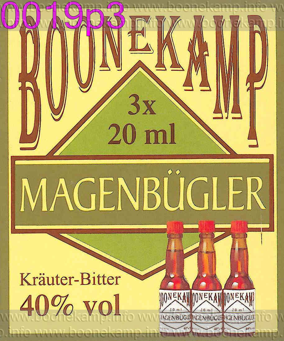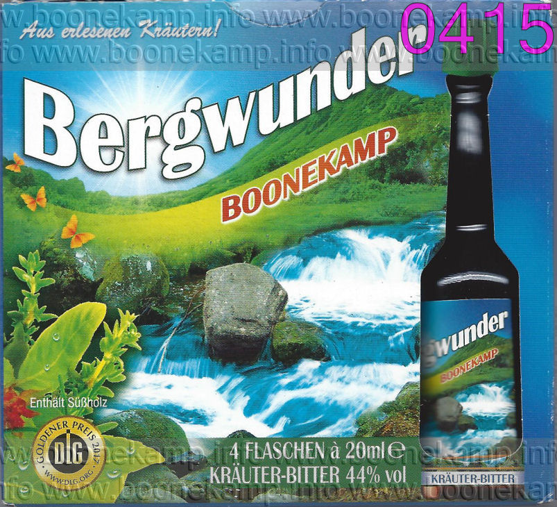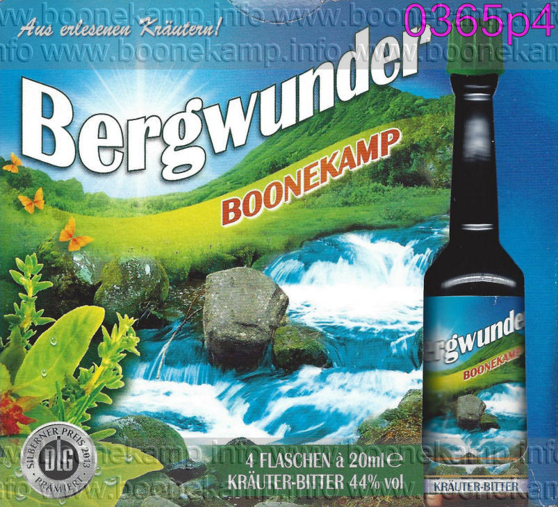 Erläuterung: Jede Boonekamp-Flasche bzw. Packung hat zur Identifikation eine fortlaufende Nummer erhalten (ID). In einigen Fällen sind die Unterschiede nur geringfügig (z.B. abweichende Werbetexte, Herstellerangaben, usw). Nähere Informationen dazu in der Datenbankliste.