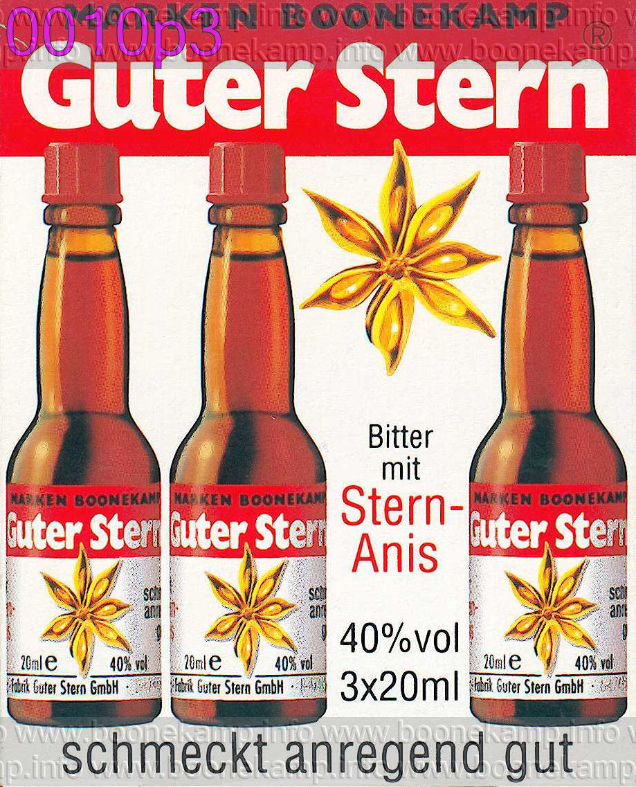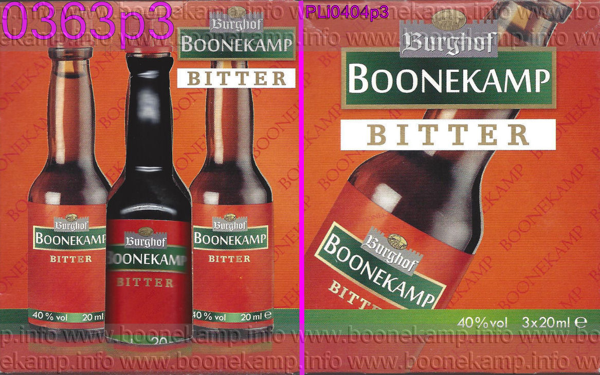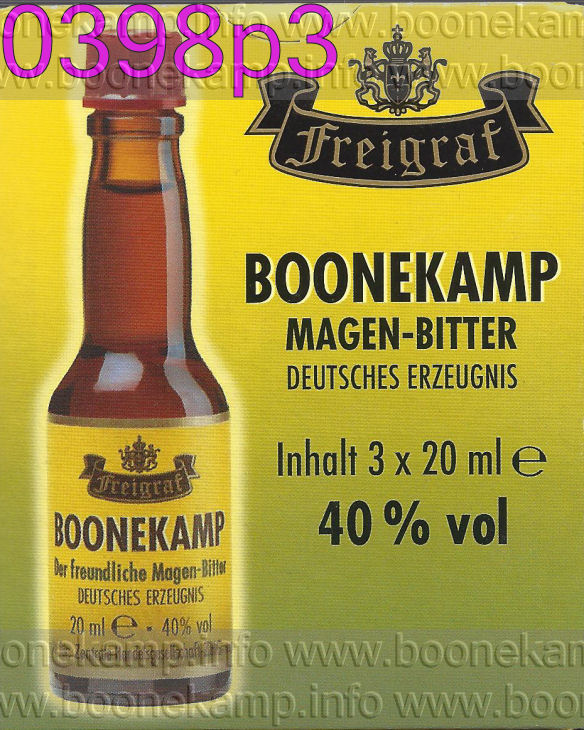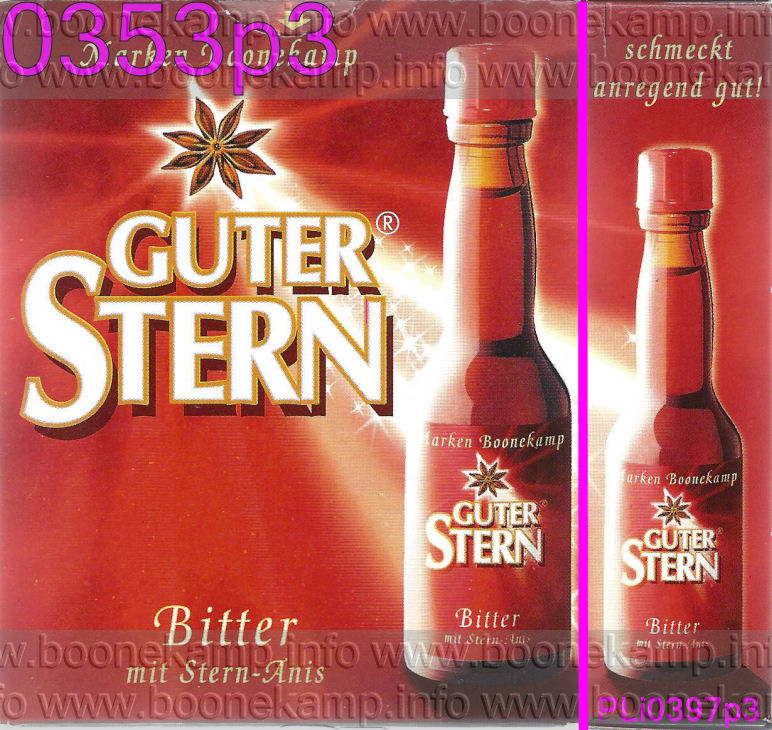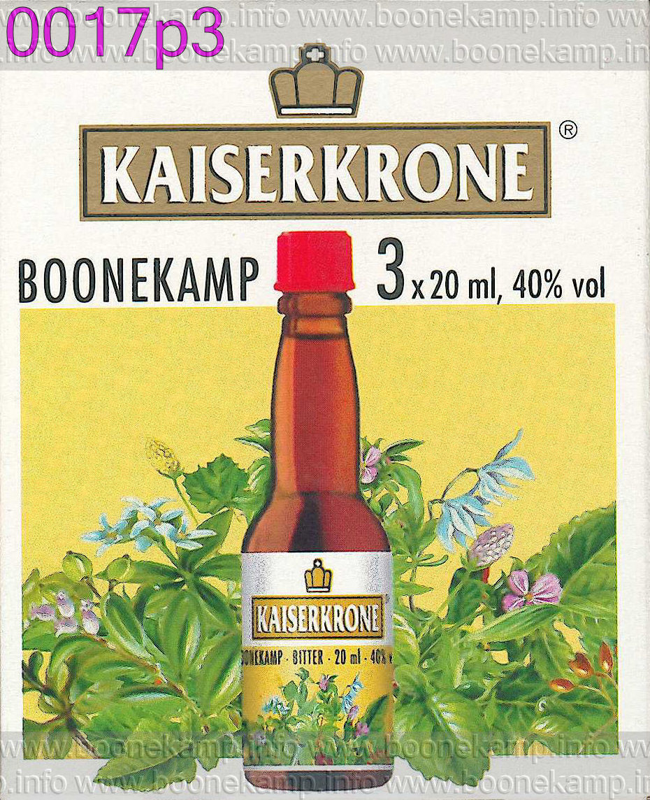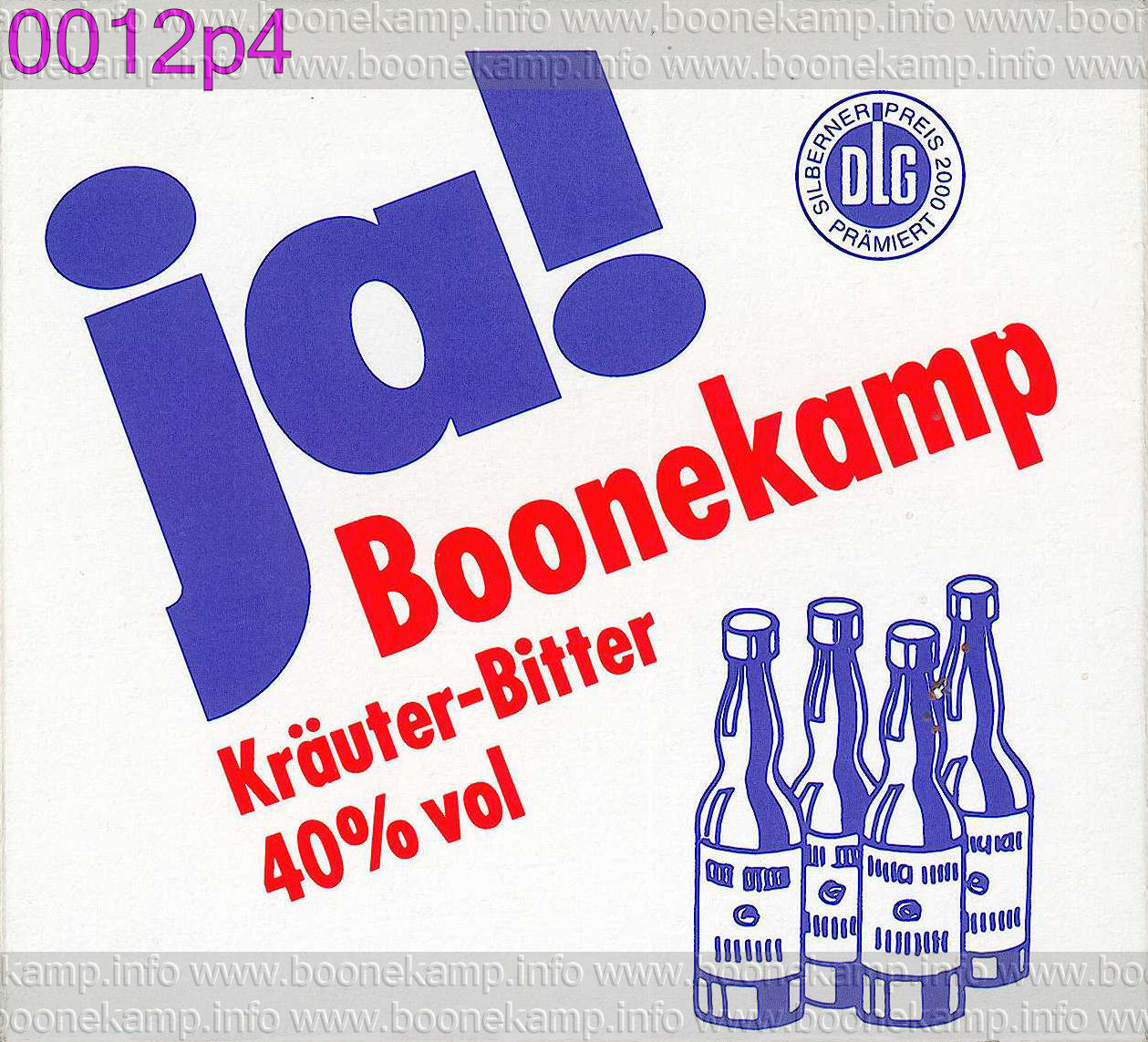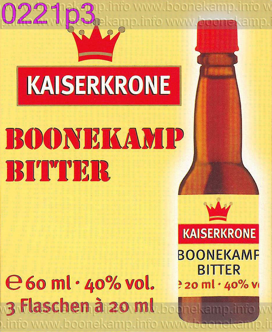 Erläuterung: Jede Boonekamp-Flasche bzw. Packung hat zur Identifikation eine fortlaufende Nummer erhalten (ID). In einigen Fällen sind die Unterschiede nur geringfügig (z.B. abweichende Werbetexte, Herstellerangaben, usw). Nähere Informationen dazu in der Datenbankliste.