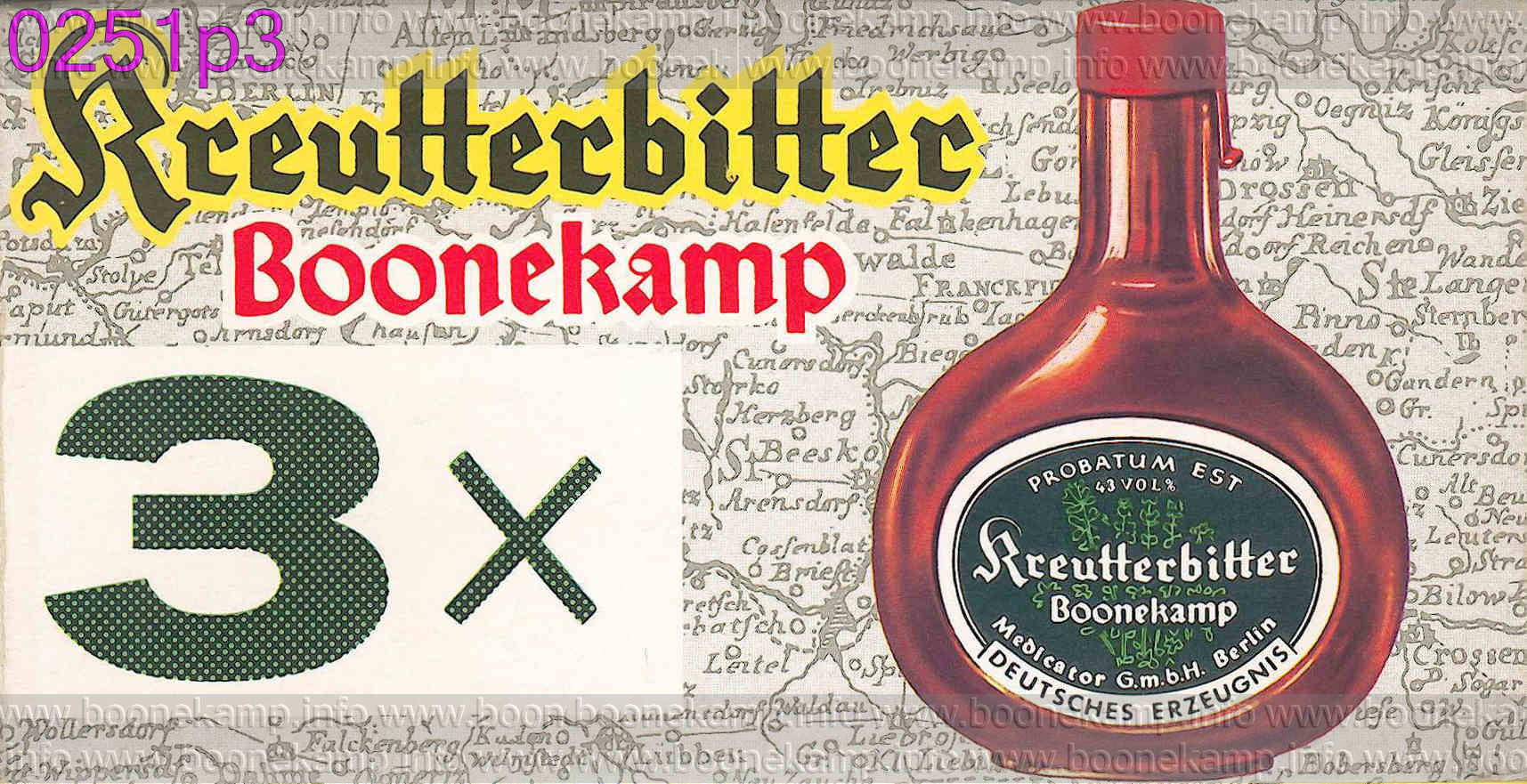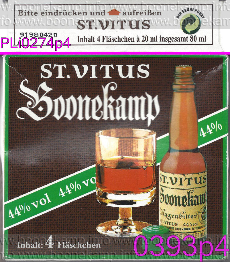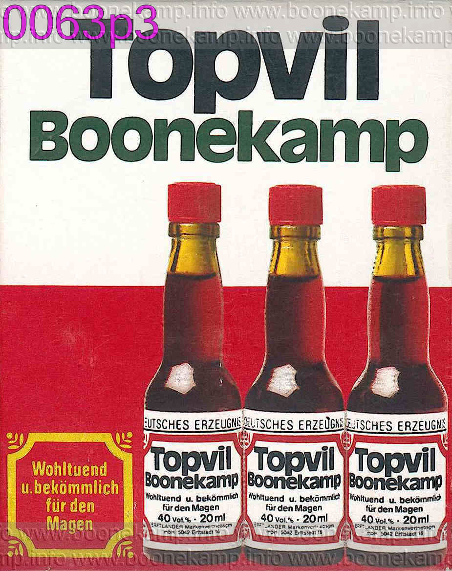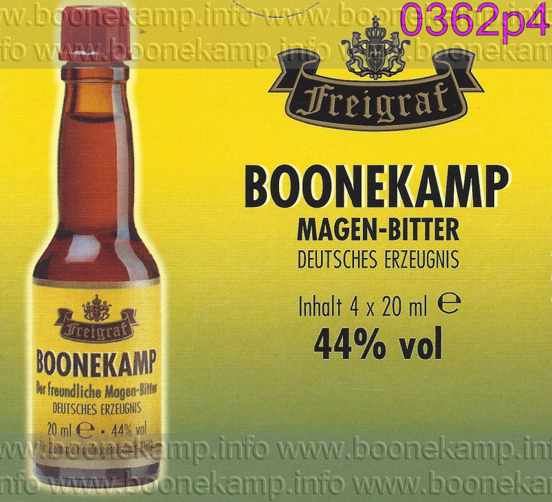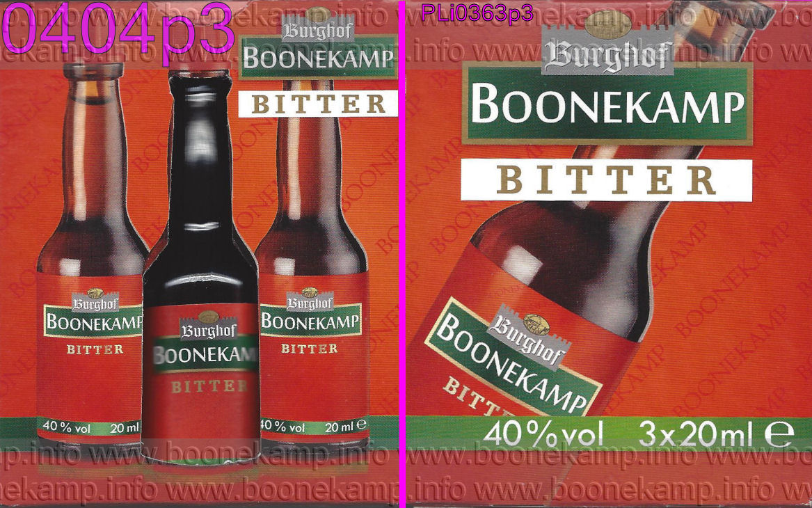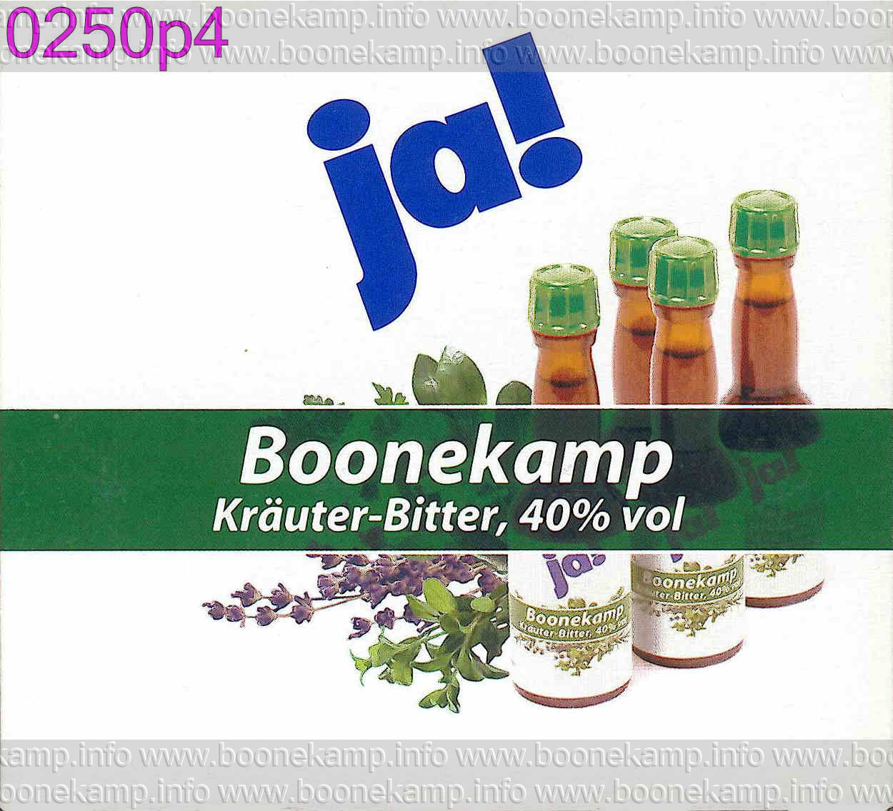 Erläuterung: Jede Boonekamp-Flasche bzw. Packung hat zur Identifikation eine fortlaufende Nummer erhalten (ID). In einigen Fällen sind die Unterschiede nur geringfügig (z.B. abweichende Werbetexte, Herstellerangaben, usw). Nähere Informationen dazu in der Datenbankliste.